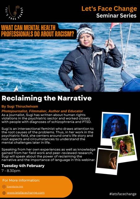 Sugi is a well known journalist an an intersectional feminist who will be speaking about the root causes of problems. Sugi’s work considers one’s story and the root aspects and circumstances to understand mental challenges in life.